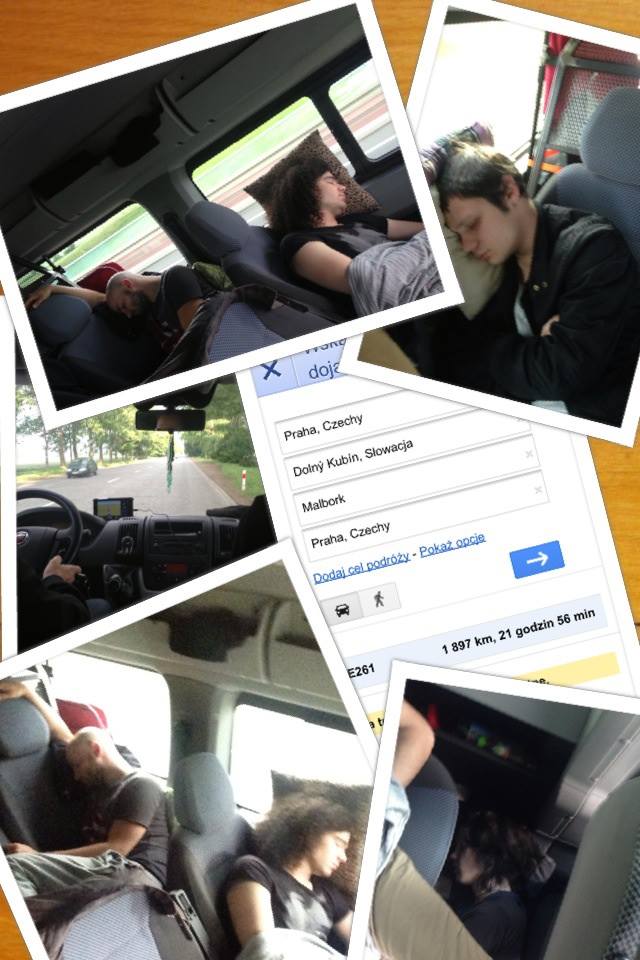 ,,Znow w trasie. Zespol juz spi, ja do nauki... Przed nami dluga droga i granie.Przynajmniej widzialam wschod slonca... Milego dnia!
